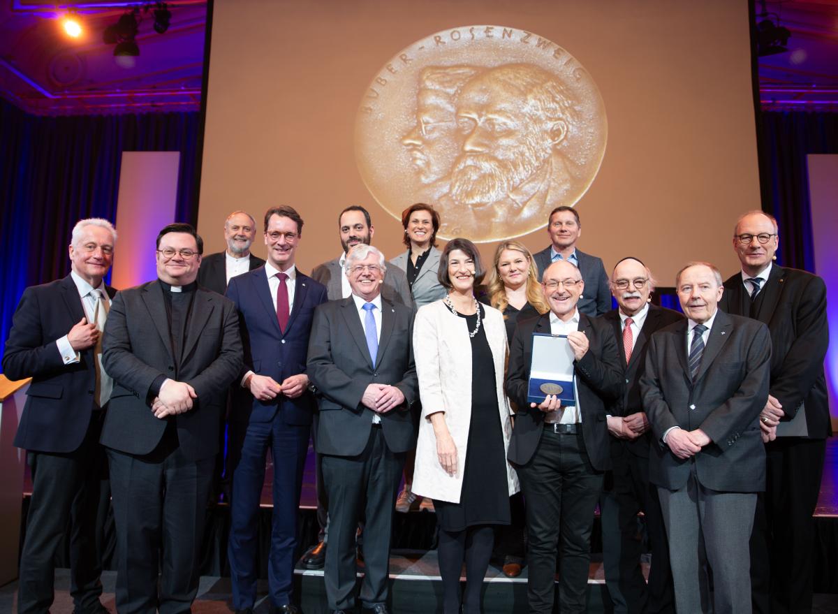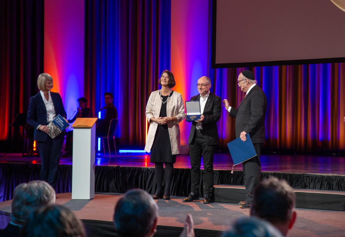 Der Preisträger betonte in seinem Vortrag die bleibende Bedeutung persönlicher Begegnung und theologischer Verständigung: „Heute stehen wir am Ende der Moderne, sind hineingetrieben in eine neue Epoche, stehen in einer Zeitenwende. Sie ist nicht mehr nur europäisch, sondern radikal global bestimmt. Doch die Fragestellung ist ähnlich: Wie gehen partikulare Identitäten und universale Werte zusammen? Das Partikulare droht sich national-identitär dem Universalen entgegenzustellen. Wieder stellt sich die Frage, was dies für das jüdische Volk bedeutet. Und leider muss man seit dem 7. Oktober feststellen, dass für viele mit dem Staat Israel die alte europäische ,Judenfrage' auf globaler Ebene zurück ist. Im Antisemitismus unserer Tage verbinden sich die naiv Gefährlichen mit den Aggressiven und glauben, eine neue Weltordnung sei gerechter, wenn es keinen Staat Israel mehr gebe. Die Aufgaben von Juden und Christen aber ist es, ,mit einer Schulter', ,Schulter an Schulter' tiefer zu verstehen.“ Der christlich-jüdische Dialog sei ein fortdauernder Lernprozess, der angesichts wachsender gesellschaftlicher Spannungen besondere Aufmerksamkeit erfordere.